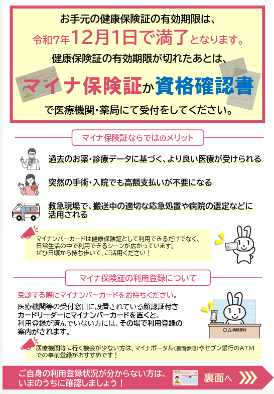 現行の健康保険証は、2025年12月1日をもって有効期限が終了となります。