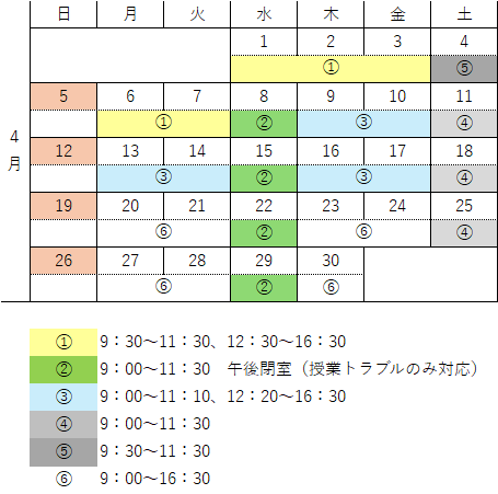 なお、年度初めの日程は問い合わせ状況により、お待ちいただく時間が長くなったり、問い合わせ内容によっては即答できなかったりする可能性がありますので、ご留意ください。
